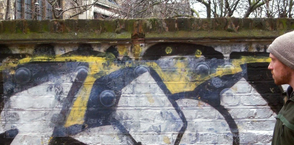While living in London Riordan installed giant vacuum-formed braille graffiti under the tag READ.